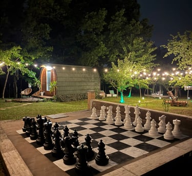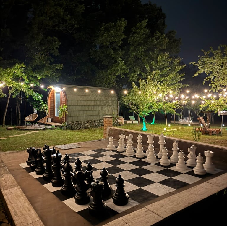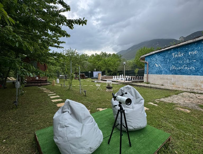 Scopri il fascino della luna con il nostro telescopio. Goditi una cena all'aria aperta con il barbecue. Guarda un film nel cinema sotto le stelle o rilassati con una partita agli scacchi giganti