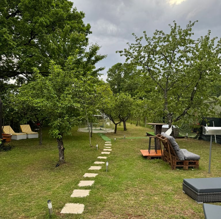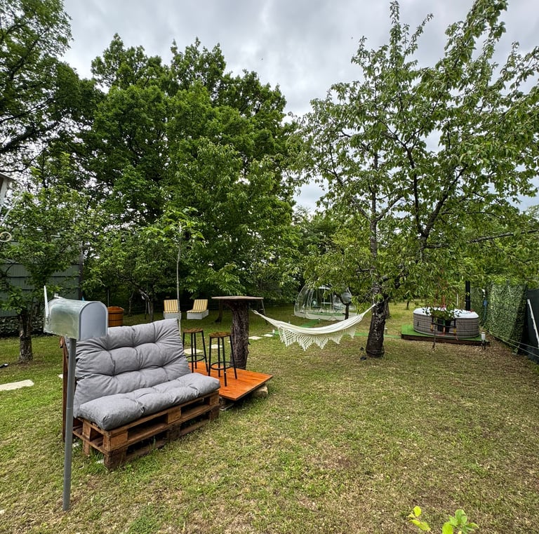 Un vero gioiello nascosto nel cuore delle montagne. Il giardino è spazioso e ben organizzato. Altamente raccomandato a chiunque cerchi una vacanza speciale e rilassante!